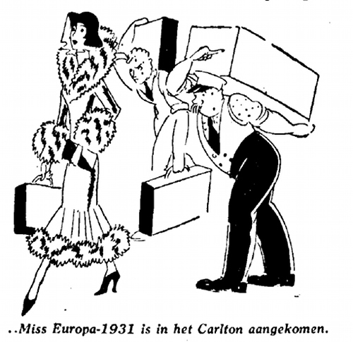 11 Ревю моды с 1881 года до настоящего времени, во главе с Мисс Европа 1931 года. Имеем честь, пригласить Вас посетить в субботу, 17 октября, начиная с 8 часов, большой банкетный танцевальный зал в отеле «Carlton» (Амстердам), и в воскресенье, 18 октября, от 4 до 6 часов танцевальный зал». 12