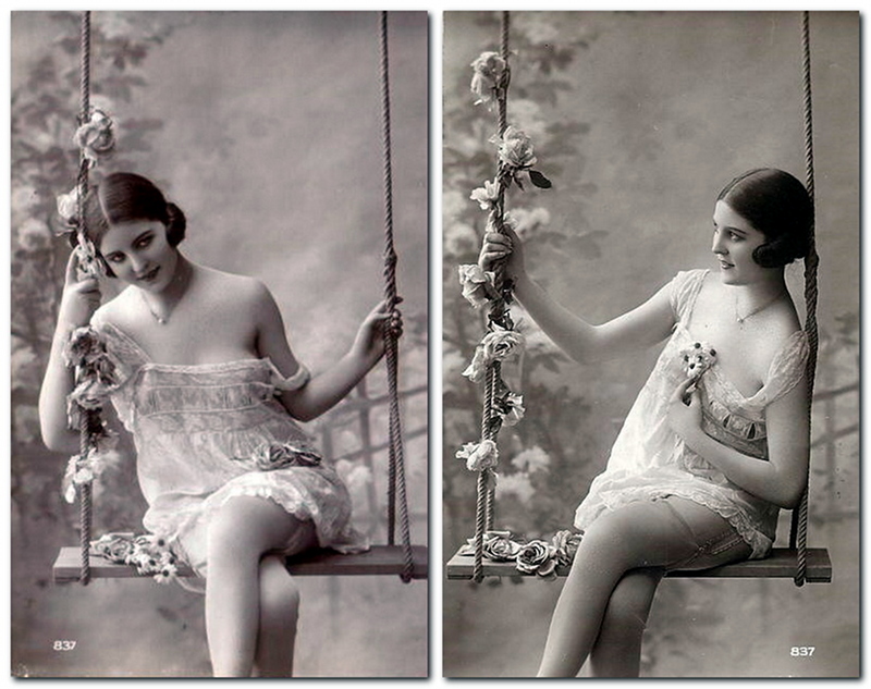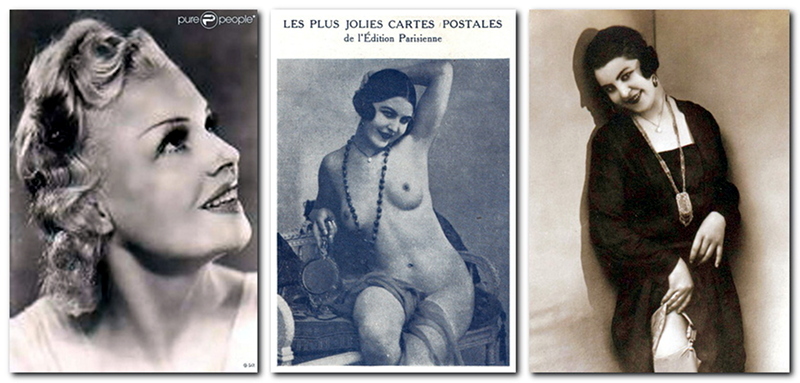 Рисунок 10. Фотографии (открытки) 12 неизвестной студии (серия 837). Фотомодель — Жюли Жанна Жюйя. Для фотографий, показанных на рис. 10-12, скорее всего, следует указывать дату: «1931 год или позже». Предположение о том, что сотрудники ведущих парижских студий специально выискали красивую девушку-провинциалку и «уломали» ее фотографироваться обнаженной, выглядит неправдоподобно. Судя по многочисленным фотографиям, дошедшим до нашего времени, у студий не было затруднений с моделями для эротических съемок. Другое дело, — победительница престижного европейского конкурса, прошедшая жесткий многоступенчатый отбор, внешние данные которой признаны одним из «эталонов» красоты того времени. Такая модель, безусловно, была востребована, в том числе и для фотографий в стиле ню. Можно предположить, что начало эротическим съемкам было положено в уже упоминавшейся «Alfred Noyer Studio», которая делала портреты девушек-конкурсанток. В частности, не вызывает удивления то, что столь именитая модель могла позировать (позировала?) Джулиану Манделю (Julian Mandel) — популярному фотографу начала 20-го столетия, который специализировался исключительно на женском ню, и издавал свои работы через парижские студии «Alfred Noyer» и «Carte-Postale» (PC Paris). Возможно, фотомодель с жемчужным ожерельем и миниатюрным кулоном на ажурной цепочке также позировала в студиях «Corona»,«Super» и «Leo of Pradet», но несколько позже. Женщина, на фотографиях этих студий, имеет некоторое сходство с Ж. Жюйя, но выглядит старше. Встречаются эротические фотографии Ж. Жюйя и анонимных производителей. Но наибольшее число фотографий, безусловно, сделано студией «PC Paris», которая была одним из крупнейших производителей фотографической продукции во всех жанрах.