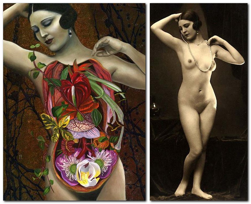 Слева: «Organica» by Bonni Reid, справа: фотография-оригинал Рисунок 19. Жюли Жанна Жюйя. Современная интерпретация образа Обсуждению статьи посвящена тема форума 1 Фотография, показанная на рис. 1, напечатана в газете «MinervA» No: 289 от 22.02.1931 [1]. 2 Предположительно Ж. Ж. Жюйя родилась в 1911 или 1912 году. В 1931 году, во время участия в конкурсах красоты, ей было 19-20 лет. 3